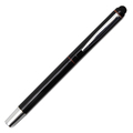 Zestaw składający się z aluminiowego długopisu i pióra kulkowego wyposażonych w końcówkę do obsługi ekranów dotykowych, pakowanych w etui z ekoskóry. Chromowane dodatki. Wkład do długopisu o średnicy 1,00 mm w kolorze niebieskim, nabój o średnicy 0,7 mm do pióra kulkowego także w kolorze niebieskim. Pakowany w czarne opakowanie upominkowe.