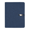 Organizer z wymiennym notesem A5 (64 kartek w kratkę, 70g/m2). Twarda okładka wykonana z tkaniny RPET. Organizer zawiera jedną dużą przegrodę, 3 mniejsze kieszonki, kieszonkę na wizytówki oraz uchwyt na długopis. Teczka zapinana jest na gumkę zaczepianą o metalowy haczyk.